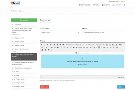 Ciascun piano può essere personalizzato nel layout, disponendo nell'ordine desiderato copertina, pagine interne, elementi grafici e di testo, e permette anche l'inserimento all'interno di un unico documento di scansioni (ad esempio di polizze).